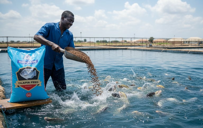 Biggain Tilapia Feed is a high-performance floating feed formulated to promote faster growth, stronger immunity, and better feed conversion in tilapia and other freshwater fish. Developed with carefully selected ingredients and essential nutrients, it ensures healthy fish, clear ponds, and higher yields, all at an affordable cost for Nigerian fish farmers.