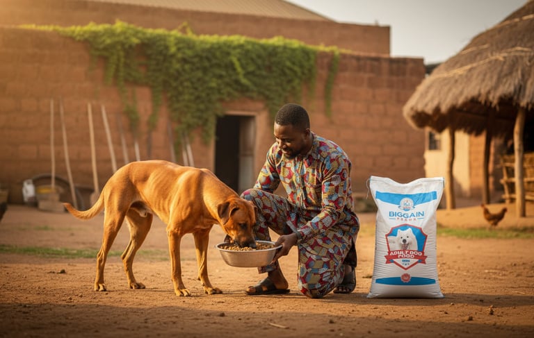 Biggain Adult Dog Food is a premium, nutrient-rich formula designed to keep your dogs strong, energetic, and healthy all year round. Made with high-quality protein, grains, and essential vitamins, it supports muscle development, shiny coats, and strong bones. Whether for guard dogs, breeding stock, or family pets, Biggain Adult Dog Food delivers balanced nutrition that keeps tails wagging and owners smiling.